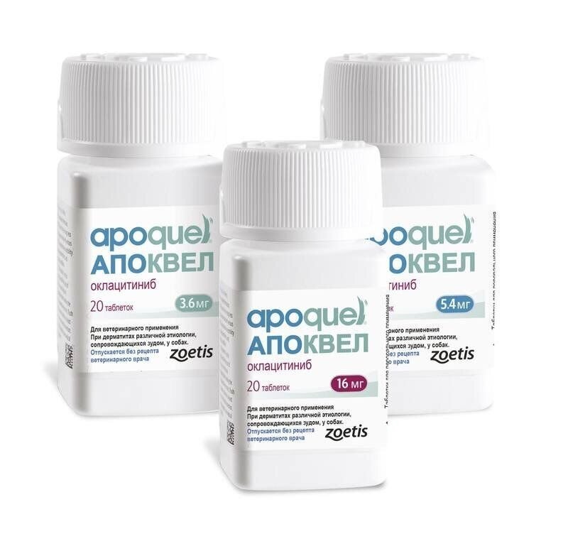 Apoquel is a non-hormonal drug for dogs, used for dermatitis of various etiologies, which are accompanied by itching. The American company “Zoetis Inc” created the drug Apoquel, which deservedly occupies a leading position among drugs for eliminating itching in dogs, regardless of its etiology. The innovative formula of the drug allows you to eliminate itching in case of dermatitis and allergies in the shortest possible time. Reduction of itching is observed within 4 hours after the first dose of the drug and the antipruritic effect will last at least a day! l is a non-hormonal drug, the main active ingredient of which is oclacitinib, which inhibits the function of cytokines that cause itching and inflammation of the skin. eliminates itching caused by dermatitis, environmental allergies таблеток.