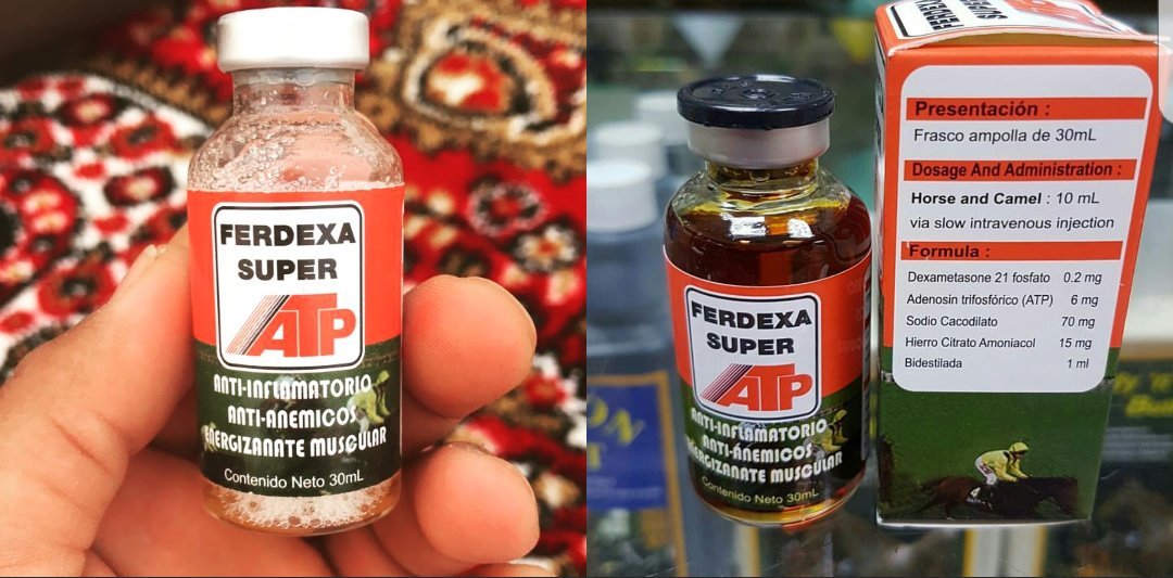 Ferdexa Super ATP is combination of dexamethasone and ATP which not only works as an anti-inflammatory / pain reliever but also greatly increase endurance in horses and camels.